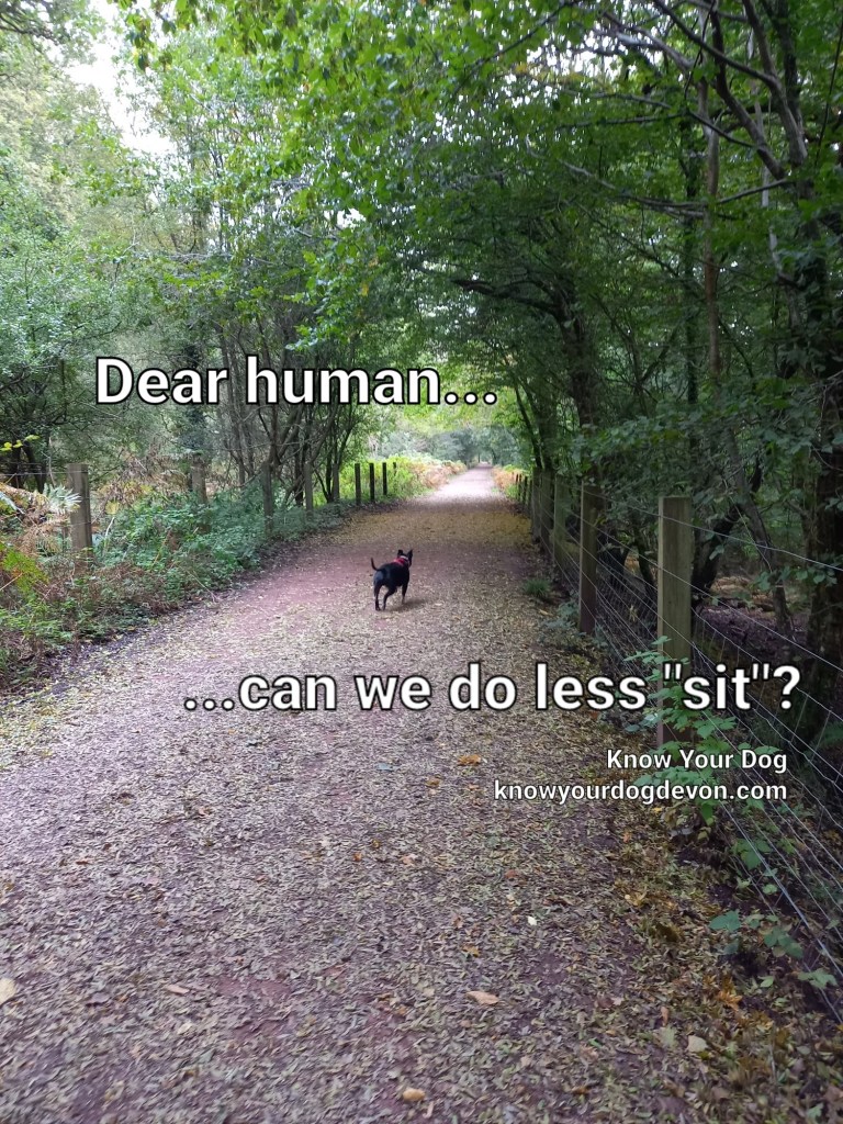 I am a dog. I don’t always want to, or feel comfortable, sitting down. Sometimes it’s not a comfortable position for me. Sometimes I would rather not be in the environment that I am in, or around certain things. I am not being stubborn. I hear that word sometimes, and I don’t really know what it means. But this “sit”…it’s the first thing I’m taught and the thing I’m asked to do most, even though I try to tell you that I don’t want to sometimes. I know we are best friends and that maybe you just have trouble understanding me. Can we do less of “sit”?